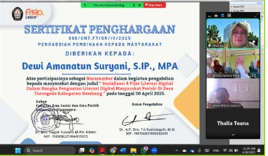 Semarang, Wednesday, April 30, 2025 — In an effort to enhance digital literacy skills among coastal communities, the Department of Public Administration, Faculty of Social and Political Sciences (FISIP), Diponegoro University, held a community service activity in Turusgede Village, Rembang Regency.